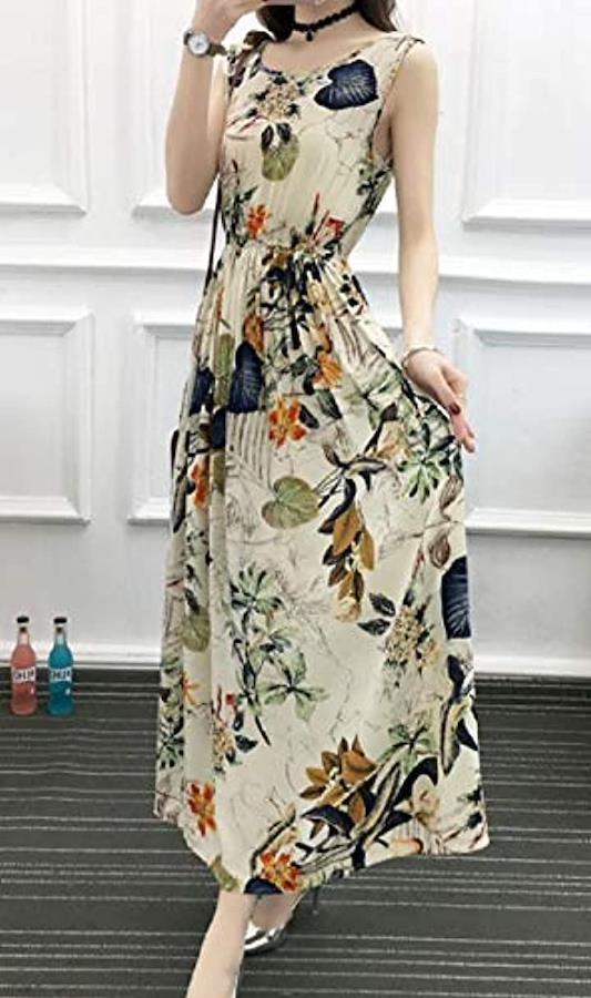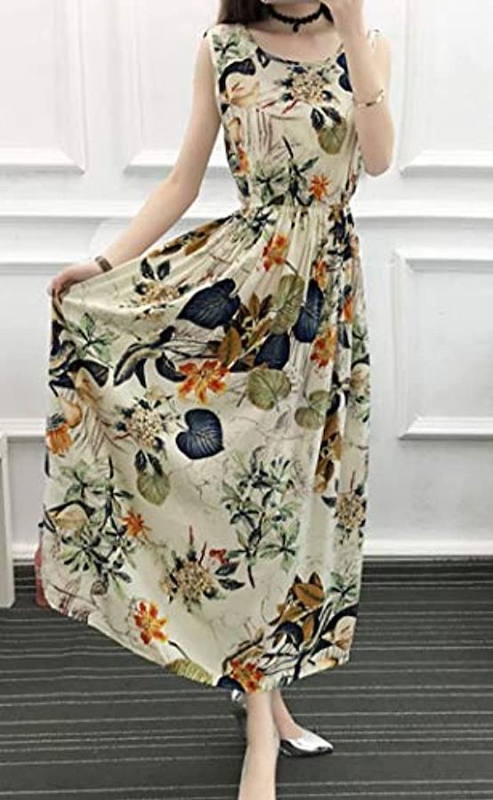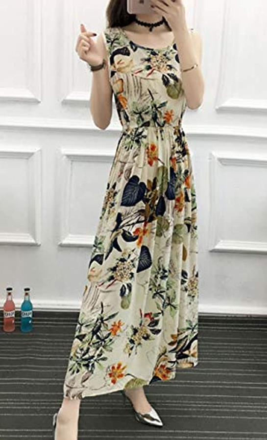 ・この夏一押し。 プリントバリエーションが豊富なノースリーブロングワンピースです。