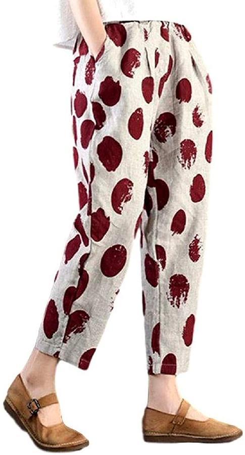 [1/2style(ニブンノイチスタイル)]柄麻テーパードチノウエストゴムパンツレディース