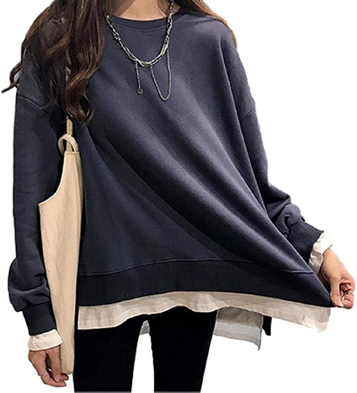 ・人気の重ね着風スリットワイドプルオーバーです。 たっぷりとワイドなシルエットと裾と袖先からのぞく異素材の白ポイントで、絶妙な着丈のバランスが人気デザイン。