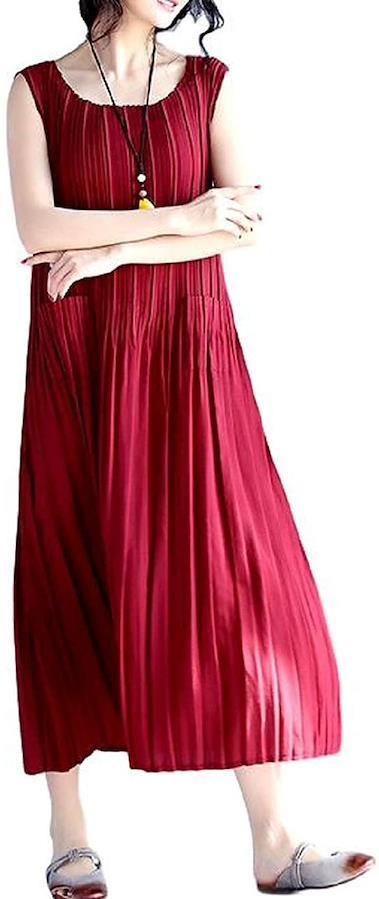 [1/2style(ニブンノイチスタイル)ノースリーブきれいめロングプリーツレトロワンピースレディースラフに着こなすだけでお洒落なこなれ感の出る一枚です。