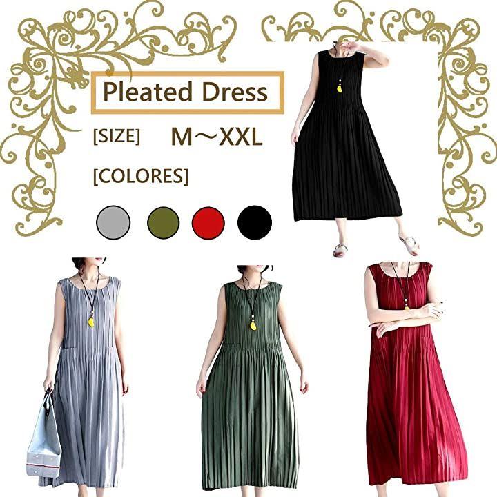 [1/2style(ニブンノイチスタイル)ノースリーブきれいめロングプリーツレトロワンピースレディースラフに着こなすだけでお洒落なこなれ感の出る一枚です。