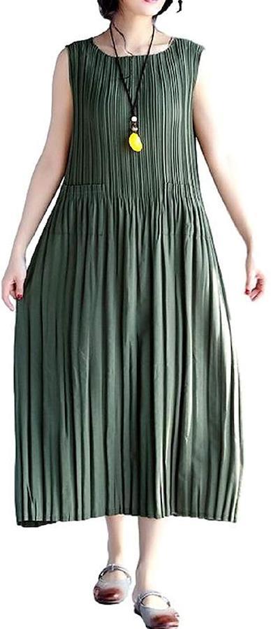 Nibunnoichi Style Sleeveless Neat Long Pleated Retro Dress Women's