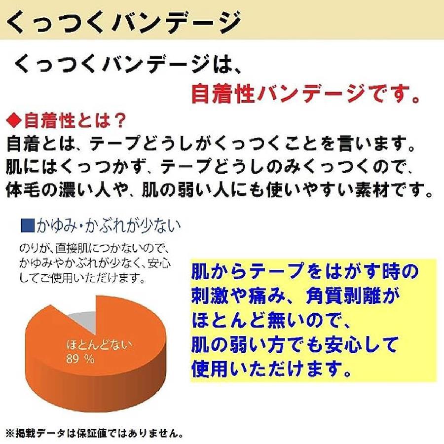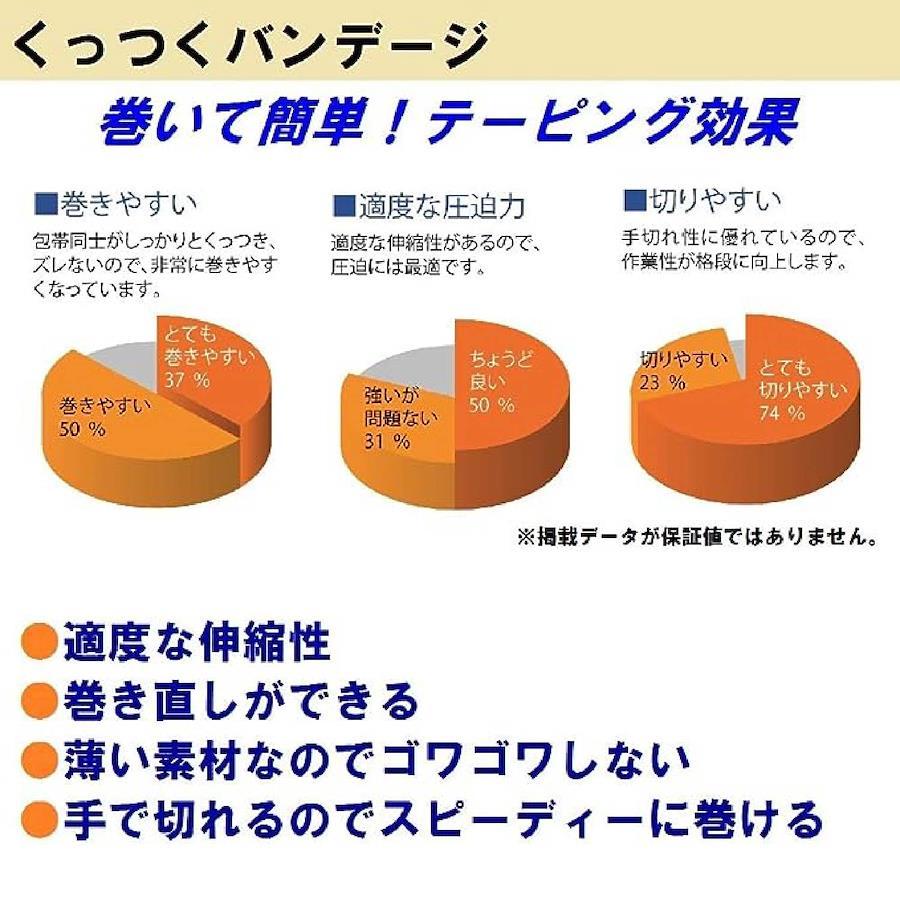 ●パッケージの【使用法】【保管上の注意】もお読みください。 【3つの機能】包帯・サポーター・テーピングの3つの機能を兼ね備えたスポーツ用自着性伸縮包帯です。圧迫、固定、ねんざの予防、アイシング用に。 【かぶれにくい】包帯同士がくっつくので、肌の弱い方でも安心してご使用いただけます。 【手で切れる】ハサミ不要。手で簡単にきれいに切れます。 【巻き直しできる】簡単に巻き直しができる便利な包帯です。 【ねんざ予防やテーピング代わりに】足首の捻挫の予防や関節のサポ―トにおすすめです。