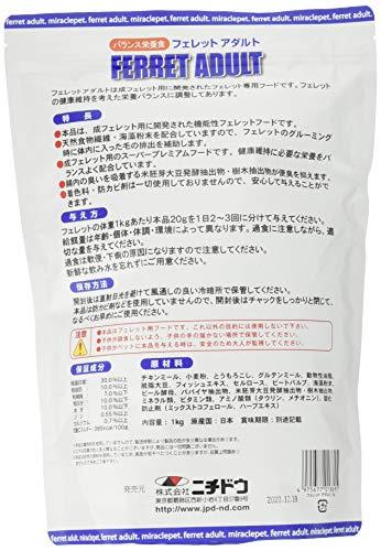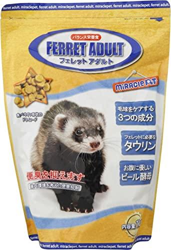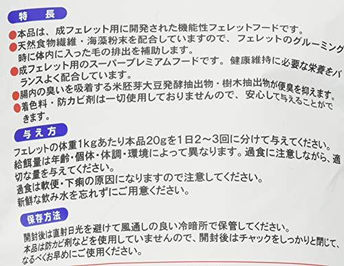 成フェレット用に開発されたフェレット専用フードです。フェレットの健康維持を考え、最適な栄養バランスに調整してあります。食物繊維を豊富に含み体内に入った被毛の排出を補助し、毛球の生成を防止します。 ・毛球をケアする3つの成分配合 ・お腹にやさしいビール酵母配合 ・フェレットに必要なタウリン配合 ・フェレットが食べやすい形状