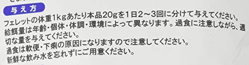 フェレットの体重1kgあたりに本品20gを1日2~3回に分けて与えてください。 給餌量は年齢、運動量、環境によって異なります。