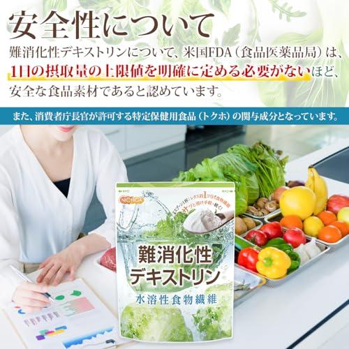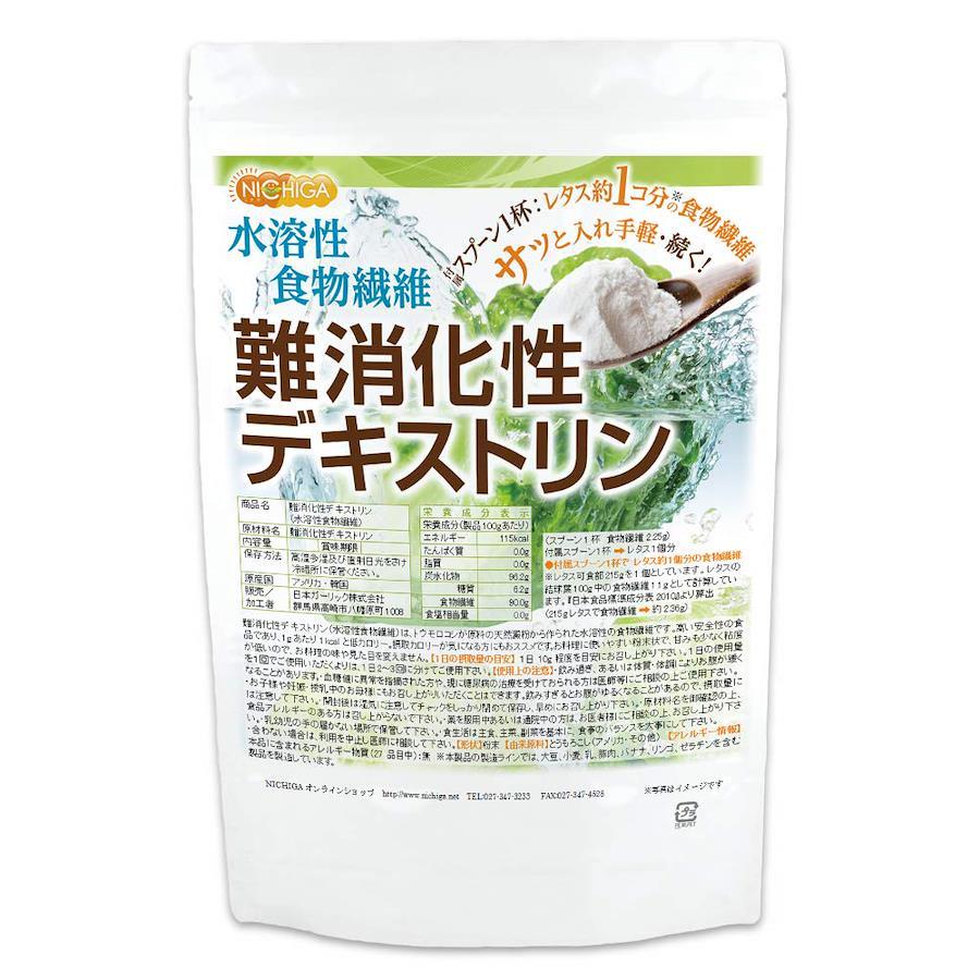 難消化性デキストリン(水溶性食物繊維)は、トウモロコシの澱粉から作られた水溶性の食物繊維です。高い安全性の食品であり、粉末状で、料理に使いやすく、甘みも少なく、粘度が低いため、お料理の味や見た目を損なうことなく、毎日の食事に取り入れることができます。 健康を意識した食生活をサポートし、理想の体重管理を手助けします。 難消化性デキストリン(水溶性食物繊維)は、トウモロコシの澱粉から作られた水溶性の食物繊維です。高い安全性の食品であり、粉末状で、料理に使いやすく、甘みも少なく、粘度が低いため、お料理の味や見た目を損なうことなく、毎日の食事に取り入れることができます。 健康を意識した食生活をサポートし、理想の体重管理を手助けします。 名称:難消化性デキストリン(水溶性食物繊維) 原材料:難消化性デキストリン 原産国:アメリカ、韓国 栄養成分表示(製品100gあたり)エネルギー115kcal たんぱく質0.0g 脂質0.0g炭水化物96.2g糖質6.2g食物繊維90.0g食塩相当量0.0g ニチガでは、安心・安全へこだわりのため、製造拠点本社工場において食品安全の国際規格である ISO22000 認証取得しております。ISO 22000は食品安全マネジメントシステムに関する国際規格です。