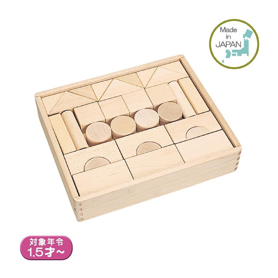 良質で美しいブナ材の木目を生かしたシンプルに仕上げられた積み木です。 森の女王とも呼ばれるブナの持つ素材感に触れてみてください。 積み木遊びを通じて、形、木の持つ質感に触れる事で、子ども達は様々な情報を吸収します。 四角、三角、円柱、アーチ型、形も色々ありますので、積み木遊びを思う存分に楽しむことができますね。 ※日本製になります。 本体サイズ:W32.8xD27.8xH6.2cm 対象年齢:1歳6ヵ月 安全基準:STマーク 対象性別:男女共用