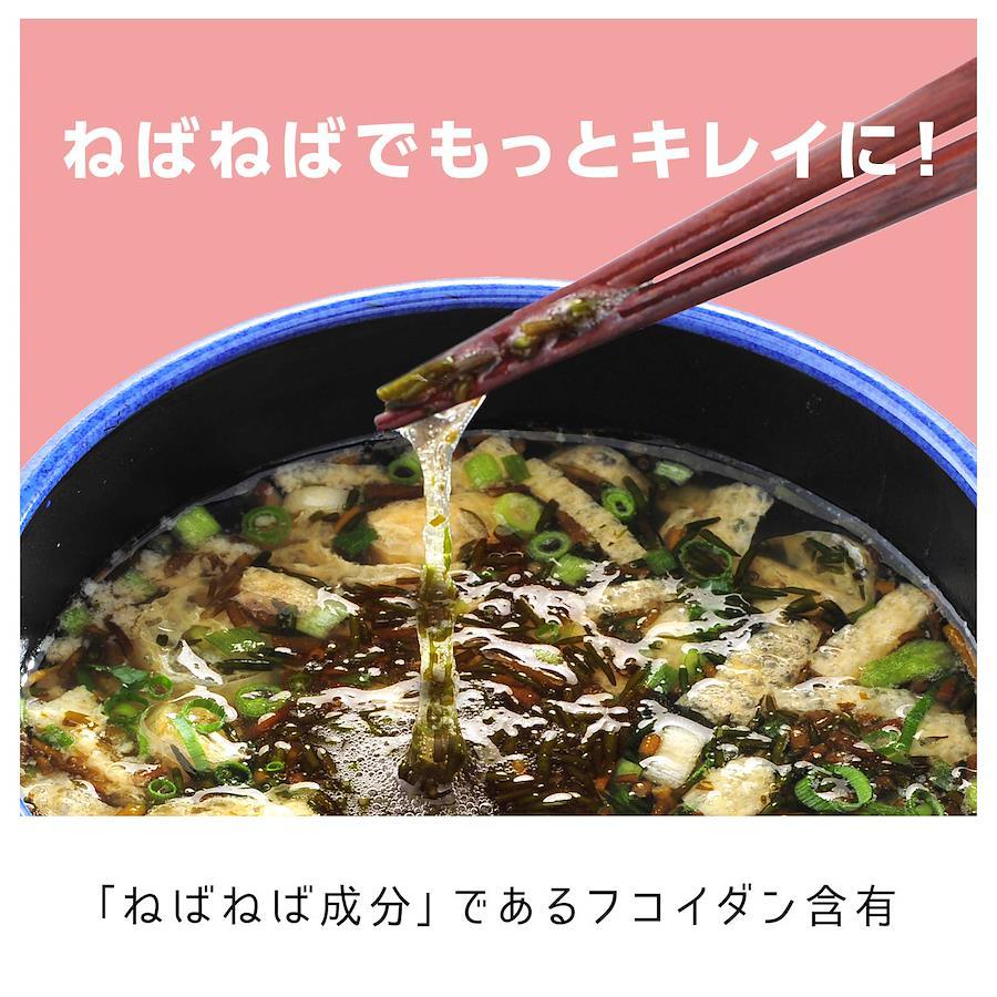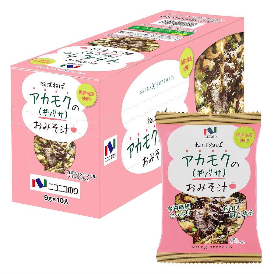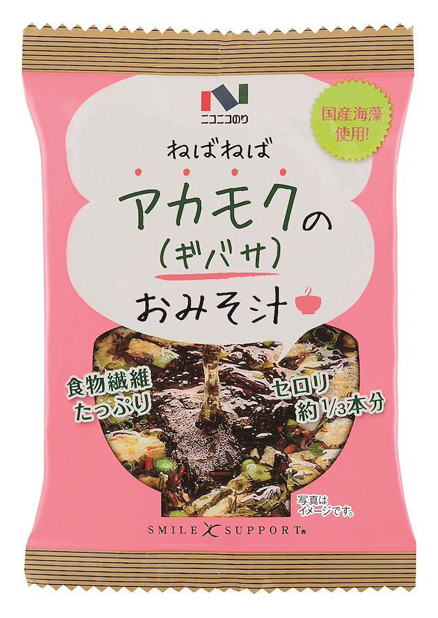 「アカモク(ギバサ)」は、ワカメ、メカブ、コンブと同様、褐藻類に属する海藻です。 ねばねば海藻アカモク(ギバサ)を使い、ねばりのあるみそ汁に仕上げました。 本品は、粘りのある時期に採取した国産「アカモク」を使用しています。 フリーズドライ製法により、アカモクの「ねばねば」した成分と具材の鮮度をそのまま具現化した「みそ汁」です。 1食分30kcalとカロリー控えめです。