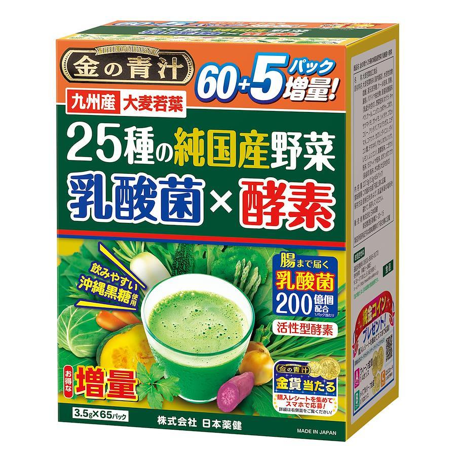 【乳酸菌×酵素ですっきり】しっかり腸まで届く乳酸菌が、1パックあたり200億個含まれております。さらに、活性酵素である青パパイヤ由来酵素も配合。私たちの体調管理をサポートします。 【25種類の野菜を一杯で摂取】キャベツ・ケール・ニンジン・カボチャ・レモン等、25種類もの野菜が凝縮されています。その全てが安心・安全の純国産です。野菜不足改善に、毎日の食事にプラスしてみてはいかがでしょうか。 【純国産の大麦若葉】九州の農家さんが心を込めて育てた大麦若葉です。 【こんな方におすすめ】野菜不足にお悩みの方、乳酸菌や食物繊維・酵素を手軽に取りたい方、純国産・無添加にこだわる方におすすめです。沖縄県産黒糖で美味しく自然な甘さがあり、青汁の苦みが気になる方でもストレスなく飲み続けられます。 【手軽においしく簡単アレンジ!】クッキーに混ぜて「青汁クッキー」に、「グラノーラ」にかけて毎日の朝食に、他にも「青汁パスタ」や「青汁ラスク」、「青汁白玉団子」もオススメです。1日1~2パックを目安にお召し上がりください。