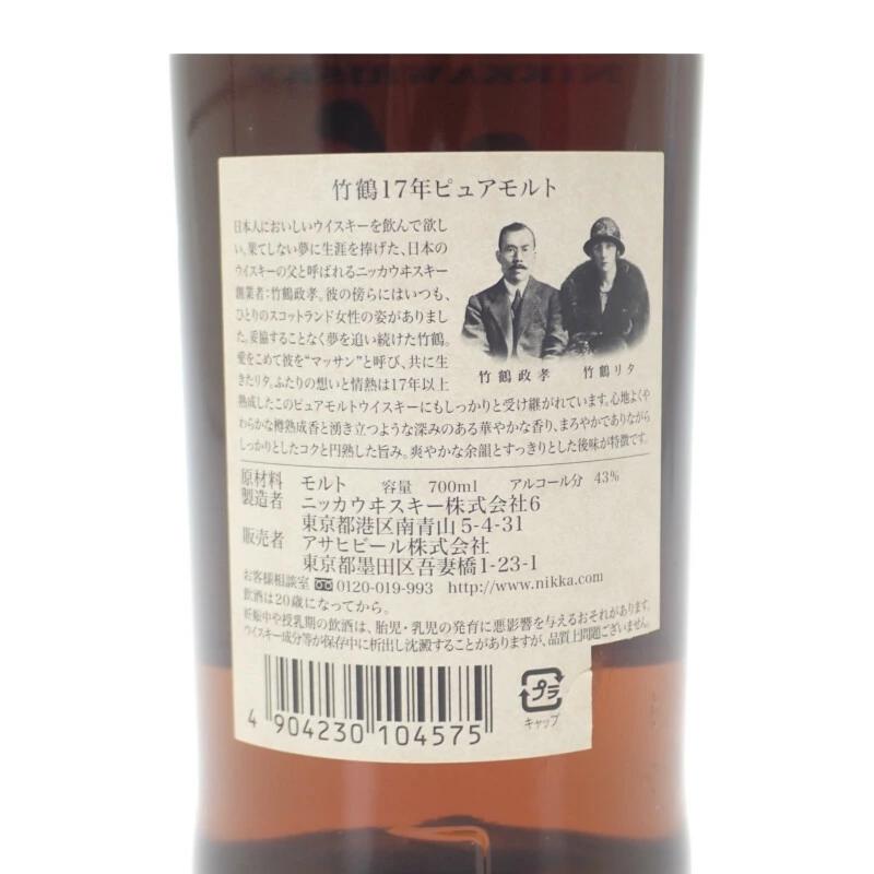 | 品名 | ニッカ 竹鶴17年 ピュアモルト お酒 アルコール 700ml 43% |