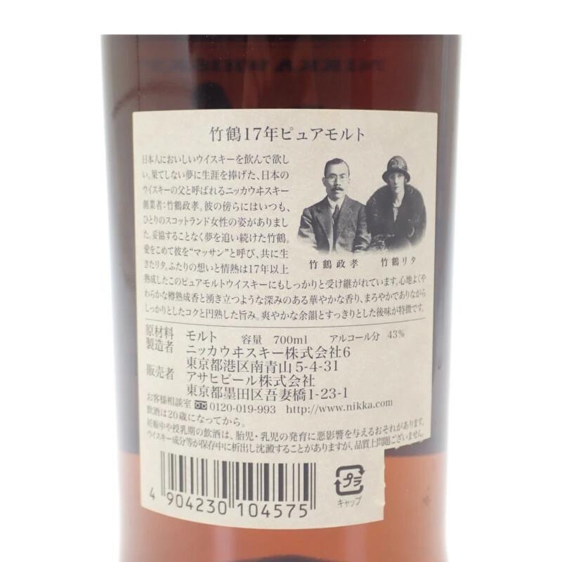 品名ニッカ 竹鶴17年 ピュアモルト お酒 アルコール 700ml 43%