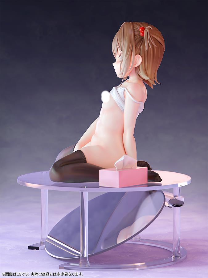 肉感少女 責任取ってよね! りんちゃんが1/5スケールフィギュアで新登場。ティッシュを手に小さく抗議する、可憐で艶やかな彼女の姿を立体化しました。ふくらみかけの小さな胸、なめらかな腰つき、みずみずしいボディを細部まで造形いたしました。表情はお好みで差し替え可能!「ぷくっと拗ねたおこ顔」と「余韻にほどけた微笑み」の2種類をご用意。特製の鏡面台座を採用し、下からも横からも、新しい一面を楽しめる仕上がりに。鏡面部分はお好みの角度に調節することが可能です。彼女の可愛い抗議を、ぜひあなたのお部屋で受け止めてあげてください。