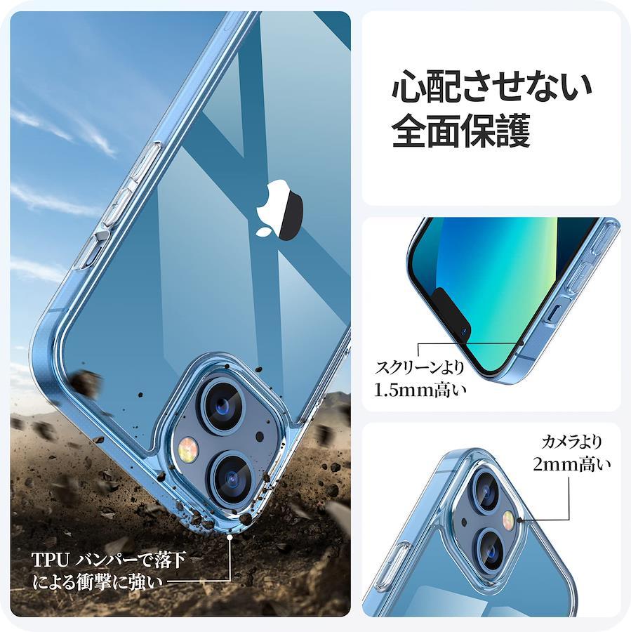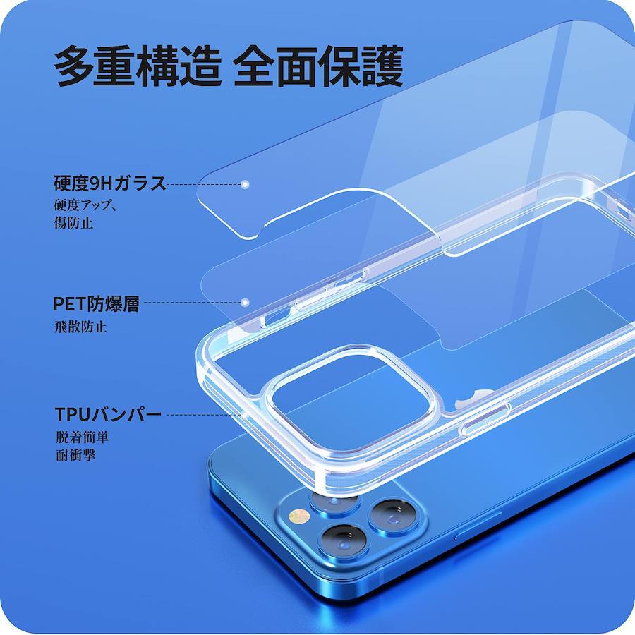 【対応機種】iPhone13 pro 専用アイフォン 13 Pro 専用【完全に保護】ケース背面には硬度9Hの強化ガラスを採用し、コイン、鍵など鋭利物から保護できます。さらに四つ角部分がエアクッション構造となり、本体が落下しても衝撃を和らげしっかり守ります。また、液晶画面より1.5mm高く、カメラレンズより2mm高く設計されていることで、ディスプレイやカメラレンズへのダメージを最低限まで抑えます。【透明感抜群】背面ガラスは極薄タイプで、クリアケースの保護性能を保ちながら、iphone機体本来の美さを損なわないよう、薄さと強度のバランスを取り、最適な設計で製造されています。【黄変に強い】高品質TPU素材を採用し、酸化防止の特殊加工を施し、