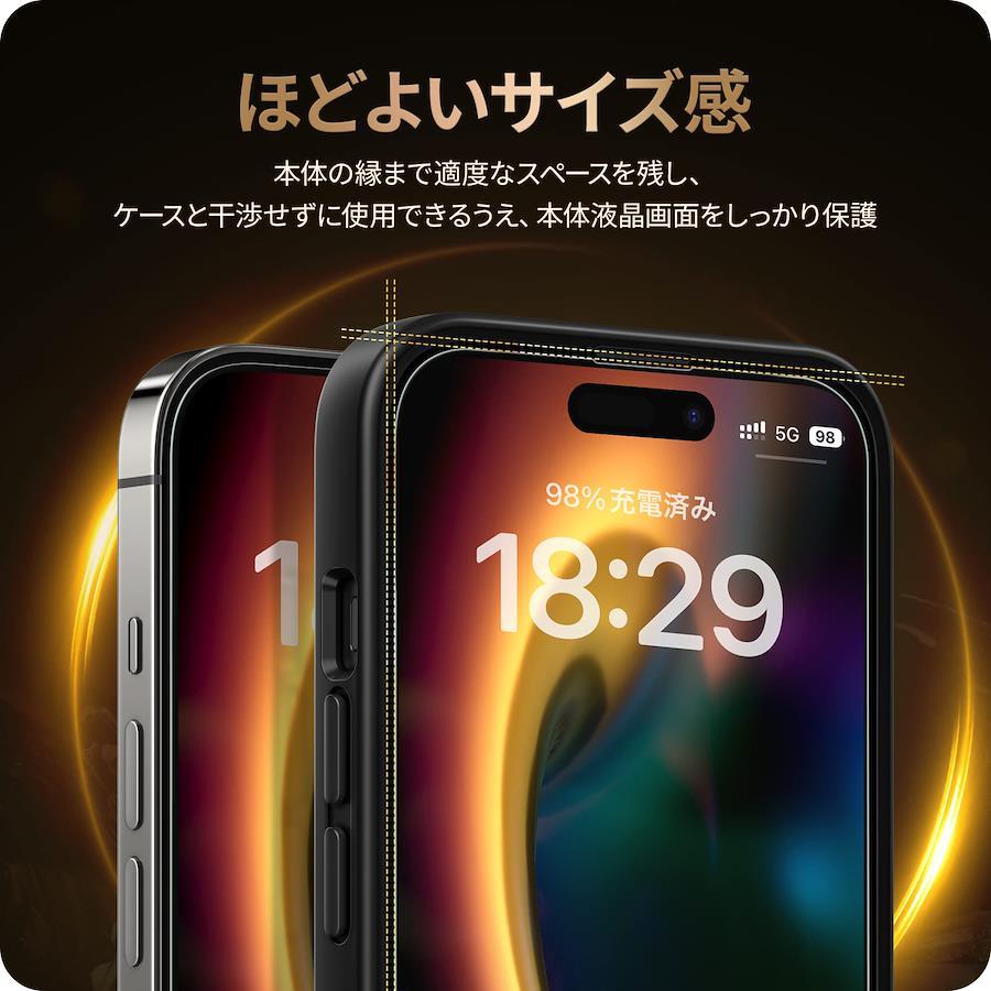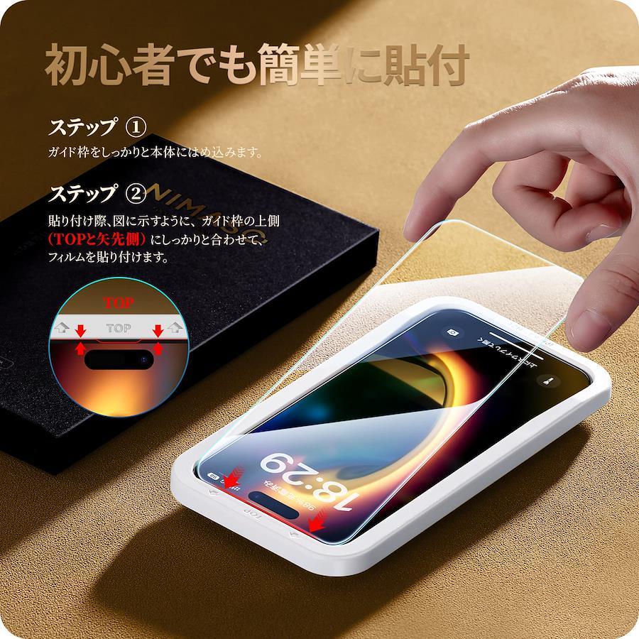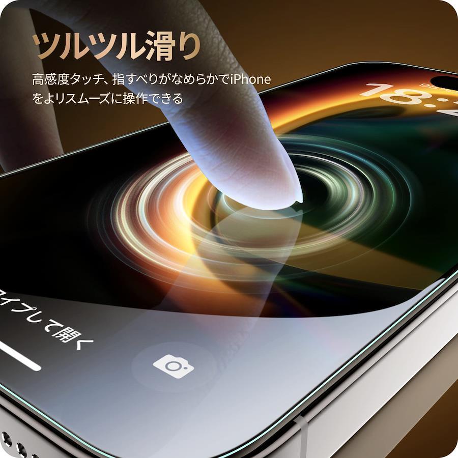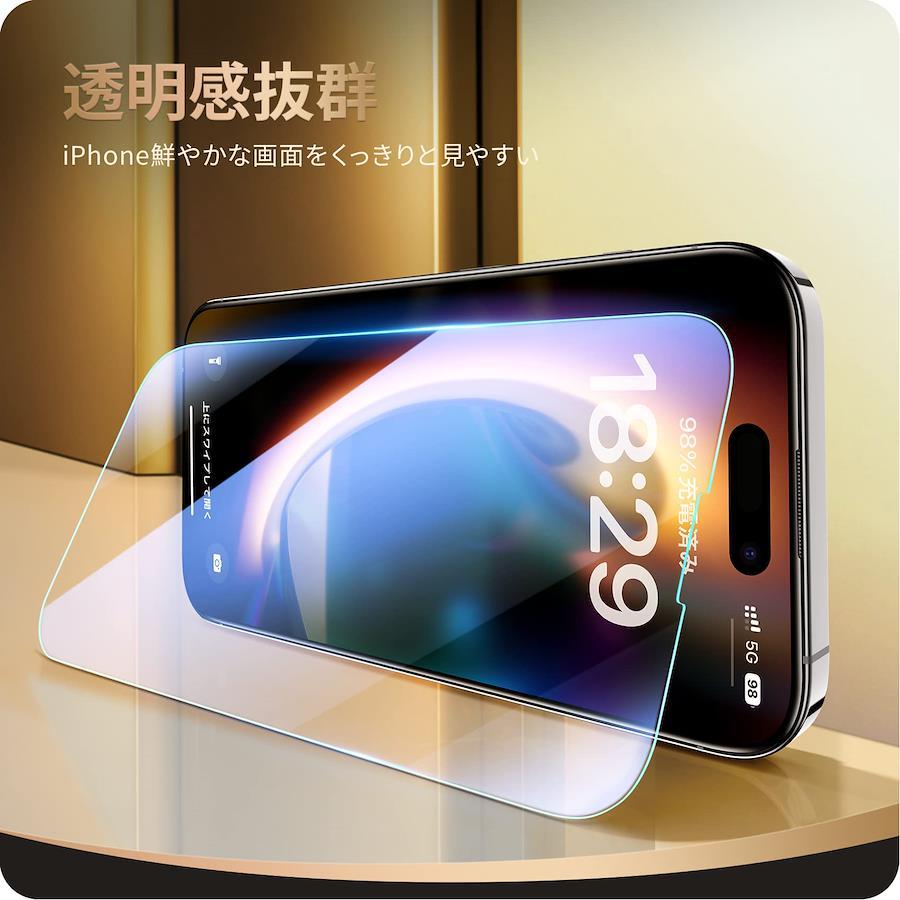 3営業日以内に発送≪新品未開封品≫:【対応機種】iPhone 14 Pro Max 用【高透過率】高い透過率のため、iPhone14Proの液晶画面を守りながらスクリーン本来の美しい画質を損なわず、お楽しみいただけます。画面上の操作も違和感なくスムーズに行えます。【9H硬度】9H硬度ガラスを採用し、ハードコーティング技術により外部からの衝撃を吸収し、画面へのダメージを可能な限り抑えます。飛散防止加工により万一割れてもガラス破片が飛び散りにくいです。【ケースと干渉せず】iPhone14promax本体の縁まで適度なスペースを残すデザインとなっており、フィルムの剥がれや浮き上がりを防止し、スマホケースと干渉せずに快適に使えます。【貼付簡単】専用の貼り付けガイド枠が同梱されています。ガイド枠を利用することで、本体とフィルムがズレることなく、だれでも簡単にフィルムを貼ることが可能です。また、フィルム自体のシリコン自己吸着層により、位置を合わせて上から軽く置くだけで気泡が入ることなく簡単に装着できます。ガイド枠下部が特殊な設計となっており、万が一貼付けに失敗しても、ガイド枠を外すことなくフィルムの貼り直しが可能です。また、