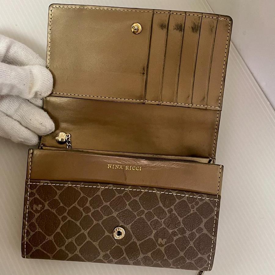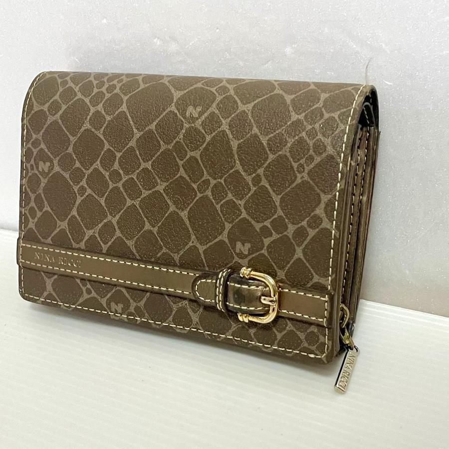 こちらは NINA RICCI ニナリッチ 二つ折り財布 ジラフ柄 ブラウン キーリング付になります。