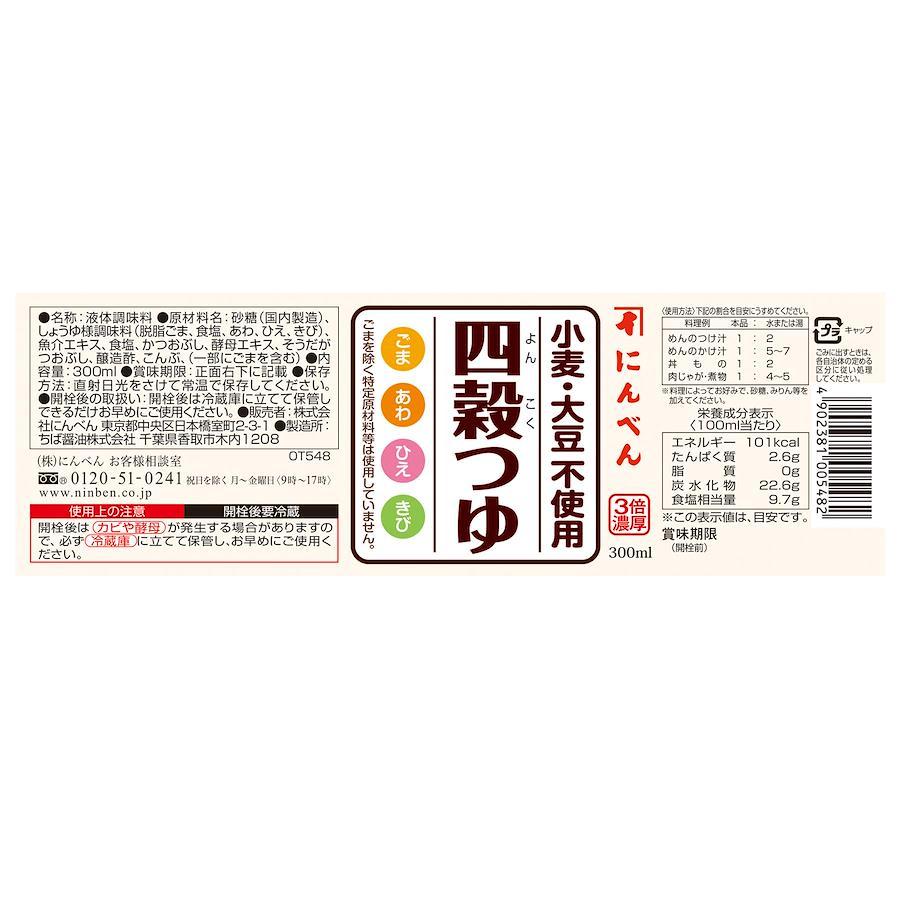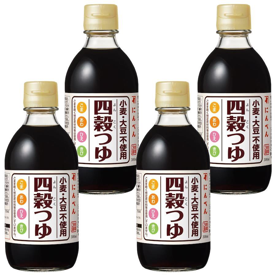 Ninben Four Grain Soup 300mL x 4 bottles (3x thick) [Sesame, foxtail millet, barnyard millet, soy sauce-like seasoning, wheat and soy free, bonito flakes, noodle soup, gluten free] Ninben, a bonito flakes and dashi specialty store founded in 1699
