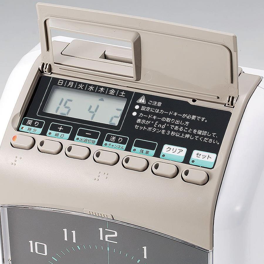 参照人数(人):30打刻数(回/日):4または6幅(mm):196奥行(mm):133高さ(mm):225●PC接続●1年間保証●6欄印字印字色:黒●