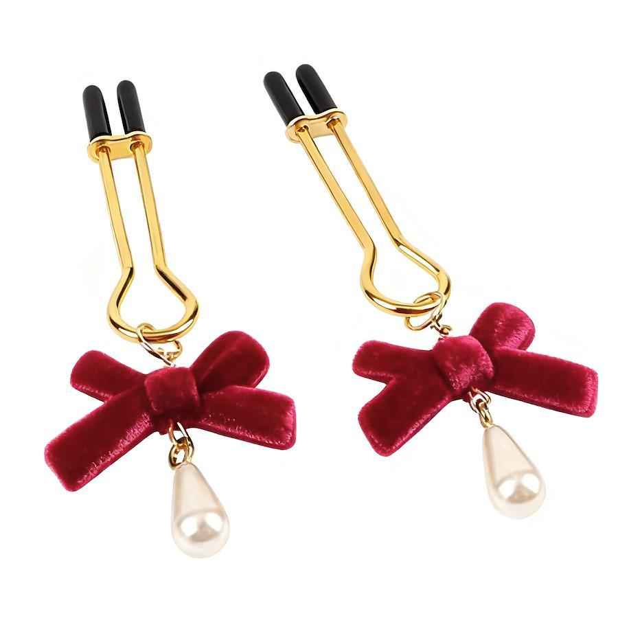 乳首クランプ ニップルクリップ クリクリップ 乳首責め 乳首開発 乳首アクセサリー 痛くない 外れにくい ステンレス製 力加減自由調整 男女兼用 おしゃれ クリスマス アダルトグッズ (パール)