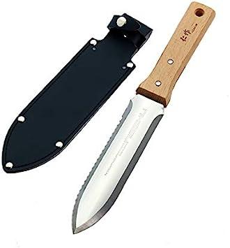 日本の狩猟文化が生んだ、掘れるナイフ。土を掘ることが出来る日本独自の形状といわれるスコップ状の刃身形状をもつ園芸用ナイフ。No.650 レジャーナイフが改良され、No.6500 レジャーナイフとなりました。刃部と柄部とのバランスを再考し、柄部を20ミリ延長することで、より機能性を向上しています。刃部の形状及び湾曲部も改良し、より強度を上げています。刃部と柄部との接合部には開放された隙間がなく、泥や土などが入り込まないように改良されています。刃部全長:170+170mm重量(ナイフ):250g重量(シース含む):300gサイズ(ナイフ):340×45×19mmサイズ(シース含む):350×45×35mm