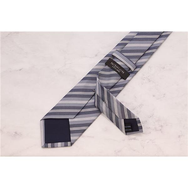 【商品紹介】ベーシックなストライプ柄のネクタイです。幅広く活用できます。※入荷時期により西陣織工業組合のタグの材質が異なる場合がございます。