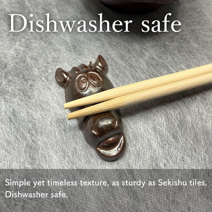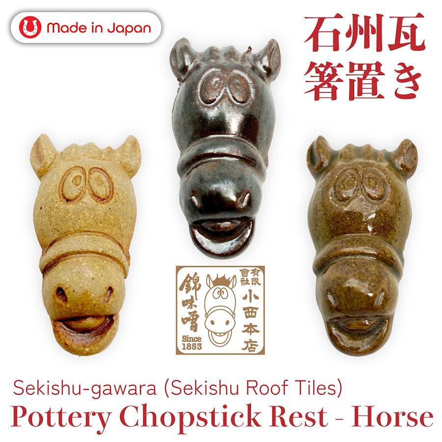 錦味噌のキャラクターの馬が島根県石見地方伝統の「石州瓦」と同じ材料・製法で風情のある趣の箸置きになりました。「石州瓦」とは、島根県石見地方で江戸時代から続く粘土瓦です。凍害や塩害に強く、日本三大瓦の一つです。箸置きの製造を担当した島根県浜田市の亀谷窯業は、創業から200年もの間、伝統技法に基づき美しく堅牢な石州瓦を作り続けています。シンプルで飽きのこない風合いと石州瓦のように頑丈で長持ち。食洗機での洗浄も可能。3種の釉薬を使い、それぞれ特徴のある箸置きとなりました。お好みのものをぜひ食卓にご常備ください。