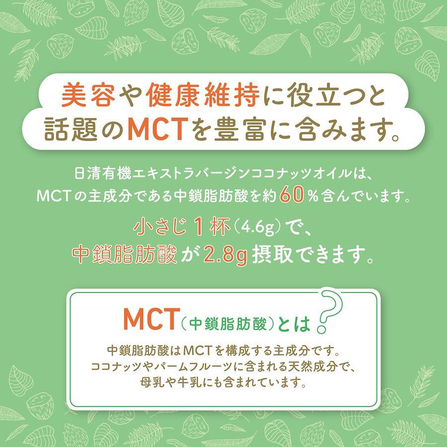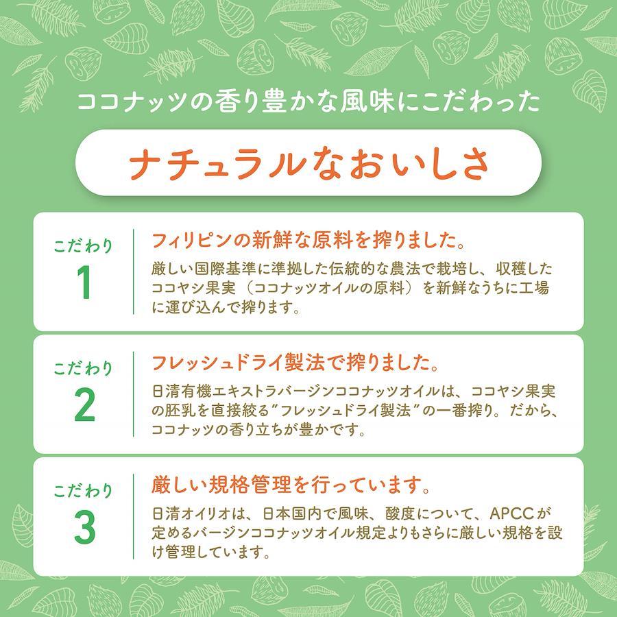 日清有機エキストラバージンココナッツオイルは、厳選されたココヤシ果実の胚乳を搾っただけの一番搾りのココナッツオイルです。中鎖脂肪酸をおいしく手軽に摂取できる食用油です。風味や酸度について、APCCが定めるバージンココナッツオイルよりもさらに厳しい規格を設けて日本国内で品質管理しています。