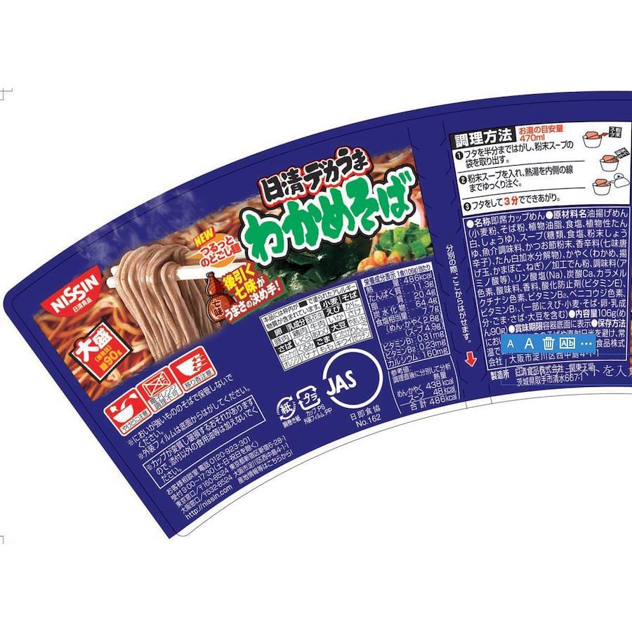 鰹だしをきかせた濃いめのつゆがうまさの決め手。のどごしの良いまっすぐなそばが、大盛り90gで食べ応え抜群。具材はわかめ、カマボコ、揚げ玉、ネギ。