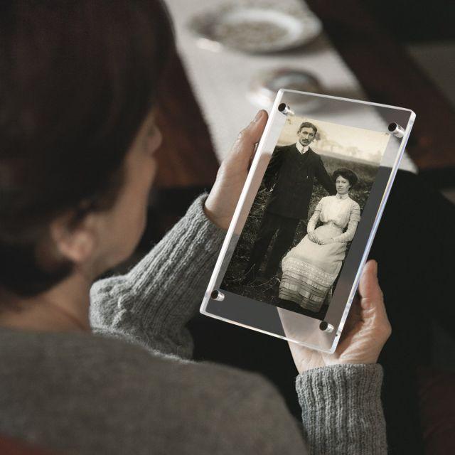 3.【組立簡単】:二枚アクリル板で写真を挟む。付属品ネジで二枚アクリル板を止める。