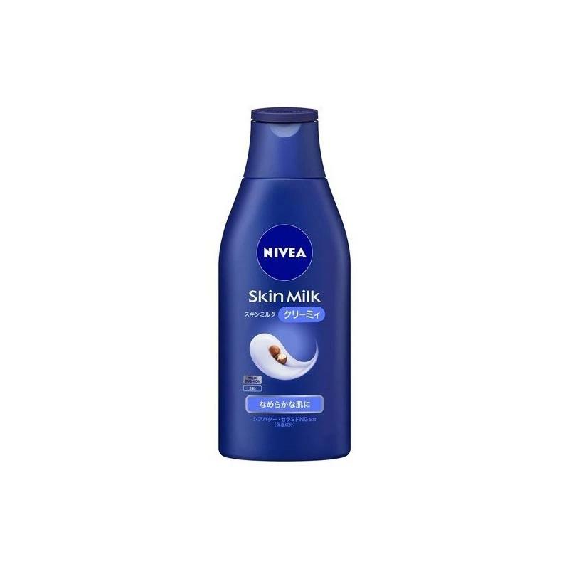 【ニベア スキンミルク クリーミィの商品詳細】●肌(角層)全体に水分を行き渡らせ、うるおいに満ちた肌に整えます。さらにしっかり閉じ込めて長時間続くしっとり肌へ●乾燥などの外的環境からも肌を守ります。●とろけるようなミルク、クリーミィタイプ(乾燥肌)●ディープ&ロングラスティングモイスチャー処方●保湿成分:セラミドII、シアバター配合。肌内部(角層)のセラミドの働きを補って、すべすべの肌に●保湿成分:GG(グリセリルグルコシド)配合●うるおい持続成分:高保水型ヒアルロン酸配合【使用方法】・適量を首筋・腕・足などの全身にお使いください。・液が出にくい時は、キャップを閉めたまま容器の口元を下にして振ってからお使いいただき、キャップを下にして置いてお使いください。・お顔にもお使いいただけます。【成分】水、グリセリン、ミネラルオイル、トリ(カプリル酸/カプリン酸)グリセリル、セタノール、シクロペンタシロキサン、ジメチコン、ステアリン酸グリセリル、ステアリン酸PEG-40、シア脂、アルギニン、加水分解ヒアルロン酸、セラミドNG、クエン酸、EDTA-2Na、カルボマー、フェノキシエタノール、メチルパラベン、香料【注意事項】・極端に高温および低温になる場所や直射日光のあたる場所には置かない。・傷、はれもの、湿疹等異常のあるところには使わない。・肌に異常が生じていないかよく注意して使う。肌に合わない時や、使用中、赤み、はれ、かゆみ、刺激、色抜け(白斑等)や黒ずみ等の異常が出た時、また日光があたって同じような異常が出た時は使用を中止し、皮フ科医へ相談する。使い続けると症状が悪化することがある。・目に入った時は、すぐに充分洗い流す。・子供や認知症の方などの誤飲等を防ぐため、置き場所に注意する。【原産国】日本