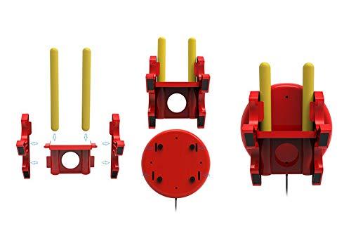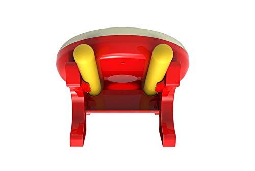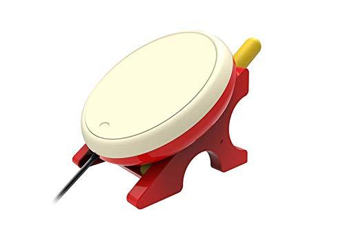 太鼓の形をしたコントローラーを実際にバチで叩くことで、まるでアーケード版さながらの雰囲気でゲームを楽しめます。接続ケーブルに付属する独立したコントローラーにより、ゲーム中の各操作や設定を行うことができます。Switchドックへの接続の他、付属の変換コネクタにより Switch本体にも接続してプレイが可能です。組立式台座の背面スペースにはバチを収納することができます。
