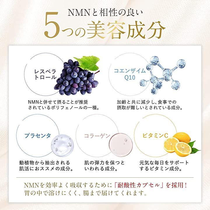 v 「厳選した成分を配合」高純度99%以上の日本製NMNで理想のエイジングケアを実現し、いつまでも美しく年齢を感じない健康的なキレイをサポートします。 1日分たった2粒で、驚きの1日「500mg」のNMNが摂取出来ます.