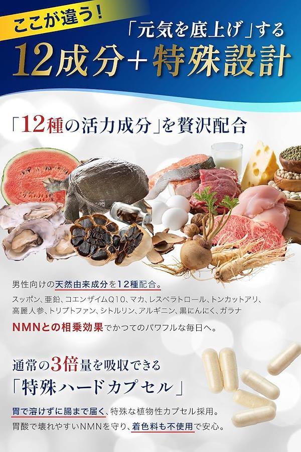 名称:β-ニコチンアミドモノヌクレオチド含有加工食品原材料:β-ニコチンアミドモノヌクレオチド(国内製造)、亜鉛含有酵母、黒ニンニク抽出物、L-シトルリン、マカ末、トンカットアリ末、すっぽん末、紅高麗人参末、ガラナエキス末(デキストリン、ガラナエキス)、コエンザイムQ10、レスベラトロール含有赤ワインエキス末/HPMC、セルロース、ステアリン酸カルシウム、微粒酸化ケイ素、ゲル化剤(ジェランガム)、L-アルギニン、L-トリプトファン内容量:27.3g(455mgx60粒)賞味期限:パッケージに記載保存方法:高温・多湿、直射日光を避け、なるべく冷暗所に保存してください。