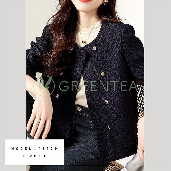 襟がないのでカチっとしすぎず、女性らしい優しい印象に。