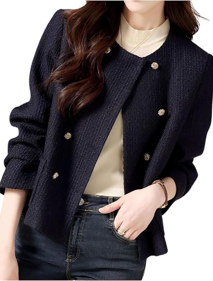 ノーカラージャケットは、カーディガン感覚なのにオフィスでもきちんと着こなせるのが魅力。