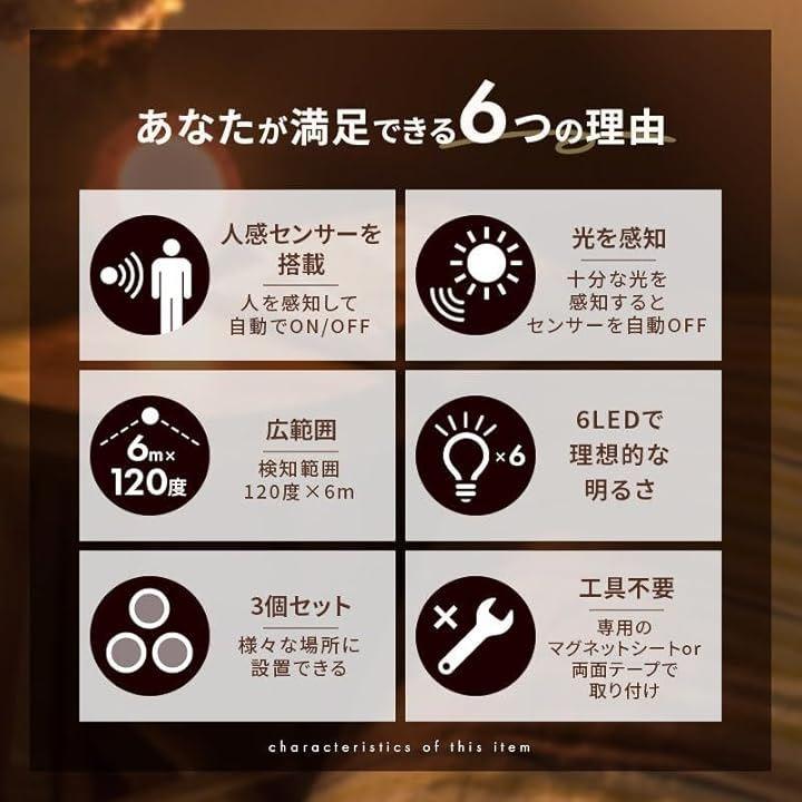*セット内容 ・ライト本体x3個 ・専用マグネットシートx3個 ・両面テープx3個