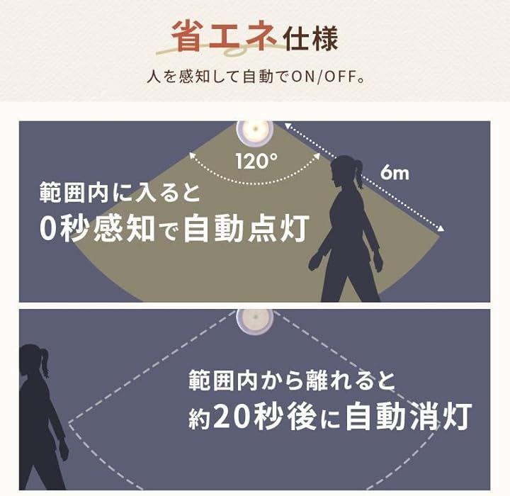 「人を検知して自動点灯&消灯」 広角120°x最大6mまでの範囲で人を感知。
