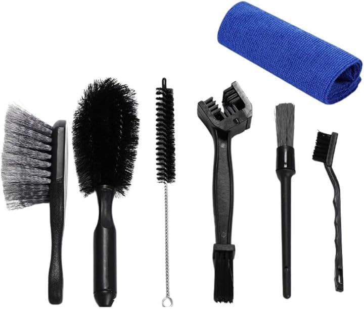 No more hesitation! Complete 7-piece car washing kit: Bicycle brushes (6 pieces), cleaning cloths, chain cleaning, road bike cleaning supplies.