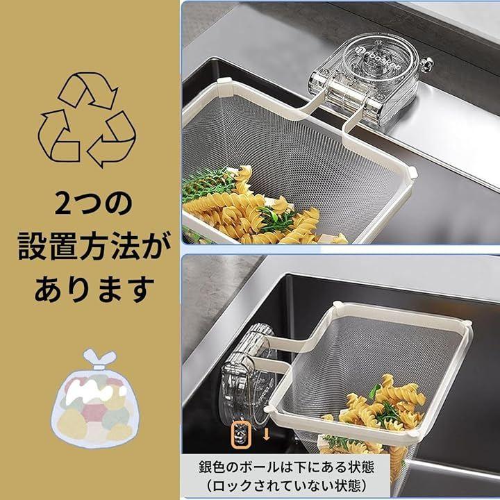 「強力吸盤でシンクや流し台の卓上にしっかり固定」浮かせる三角コーナーとして使えるので、ゴミ受けが簡単、コンパクトで衛生的。
