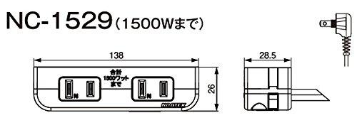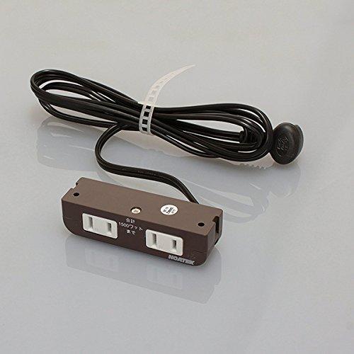 3営業日以内に発送≪新品未開封品≫:ノア 家具用コンセント(什器用) 2ヶ口コンセント 茶 VFFコード2m 棚下直付タイプ 1500Wまで Lプラグ NC1529茶