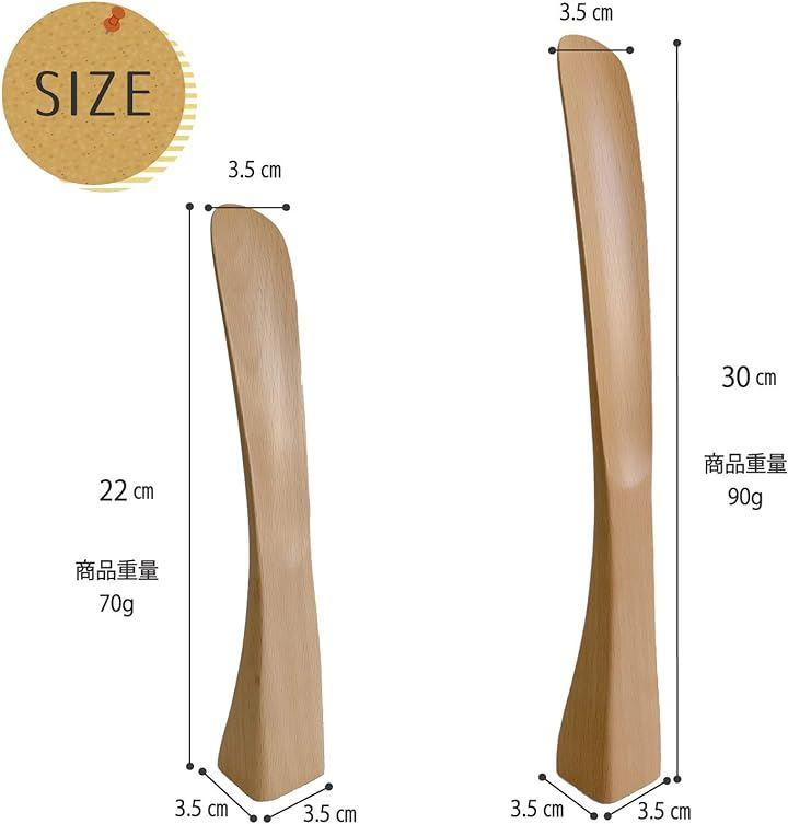 「サイズ」靴べら 22cm、30cmの2サイズ「重量」22cm:70g、 30cm:90g「材質」木製 (ブナ) ウレタン塗装「原産国」ベトナム