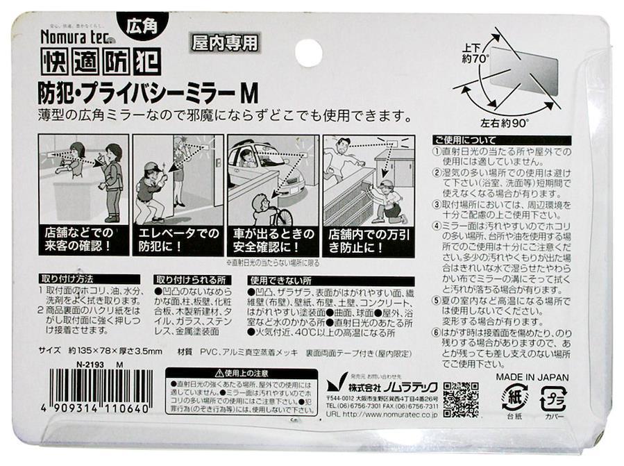 3営業日以内に発送≪新品未開封品≫:ノムラテック 防犯・プライバシーミラーM N-2193サイズ: M
