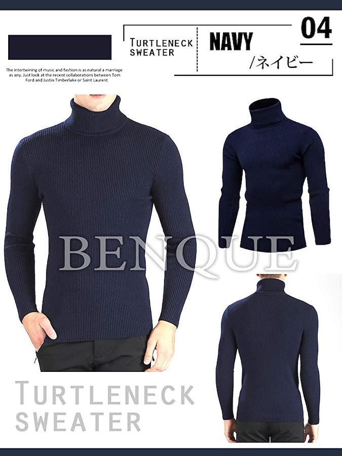 ベーシックなデザインが使い勝手のいいハイゲージニットのタートルネックセーターです。