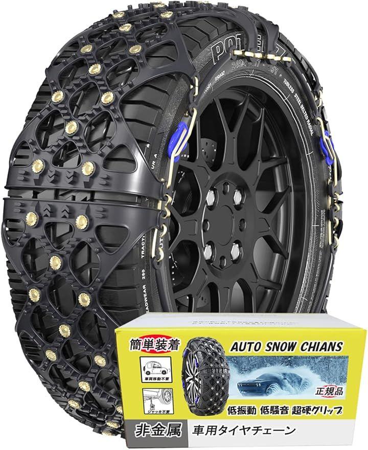 「セット内容」タイヤチェーン(駆動タイヤ2本分)x1セット、専用ハンドルx1 、軍手付き腕カバー(左右ペア)x1セット 、日語取扱説明書x1、収納袋x1