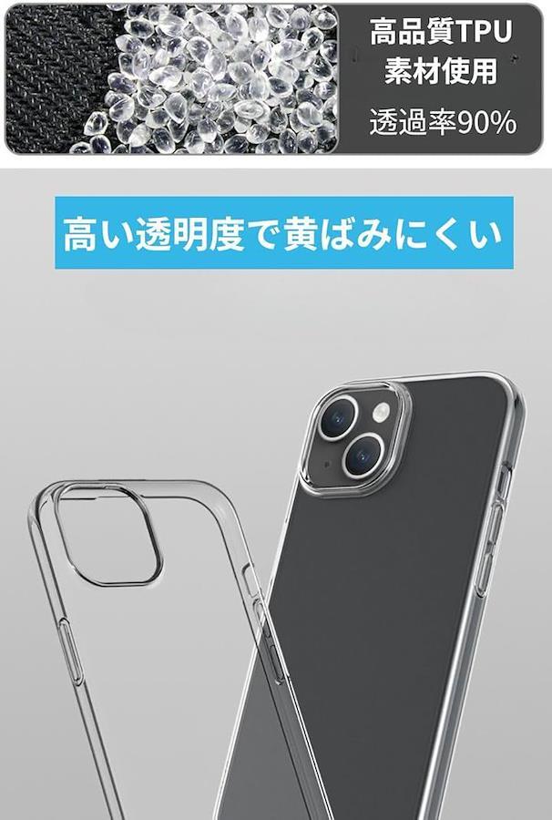 「簡単脱着透明ケース」このケースはソフトタイプのTPUを使用しており、ツルッとした手触りと適度なグリップ感が特徴です。