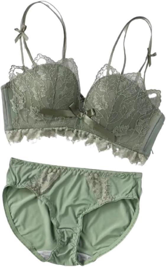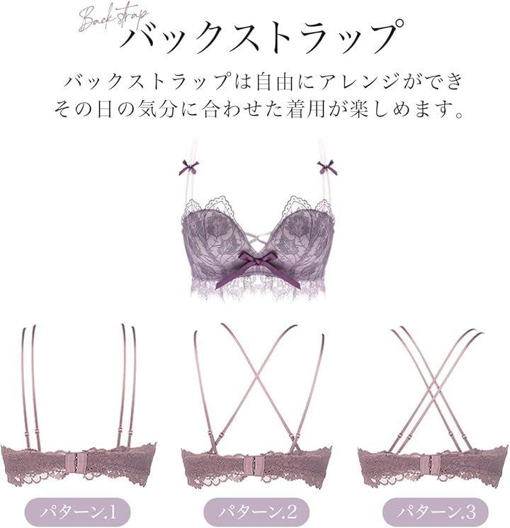 「カラー」ブラック(黒)、パープル(紫)、グリーン(緑)、キャメル(茶色)、「サイズ」ブラ:S(32/70)アンダー約56-60cm、M(34/75)アンダー約59-63cm、L(36/80)アンダー約62-66cm、XL(38/85)アンダー約65-69cm、ショーツ:フリーサイズ(ウエストゴム、透け感なし、ウエスト約28cm、ヒップ約31cm)