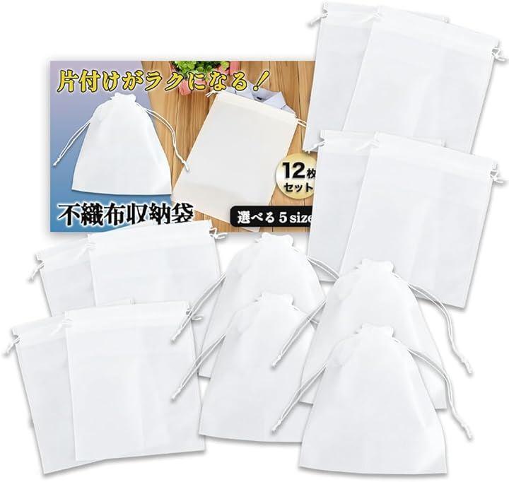 1サイズ12枚入りで、シーズンオフの衣類をホコリから守ったり、靴やバッグの保管袋にしたりと幅広く使えます。