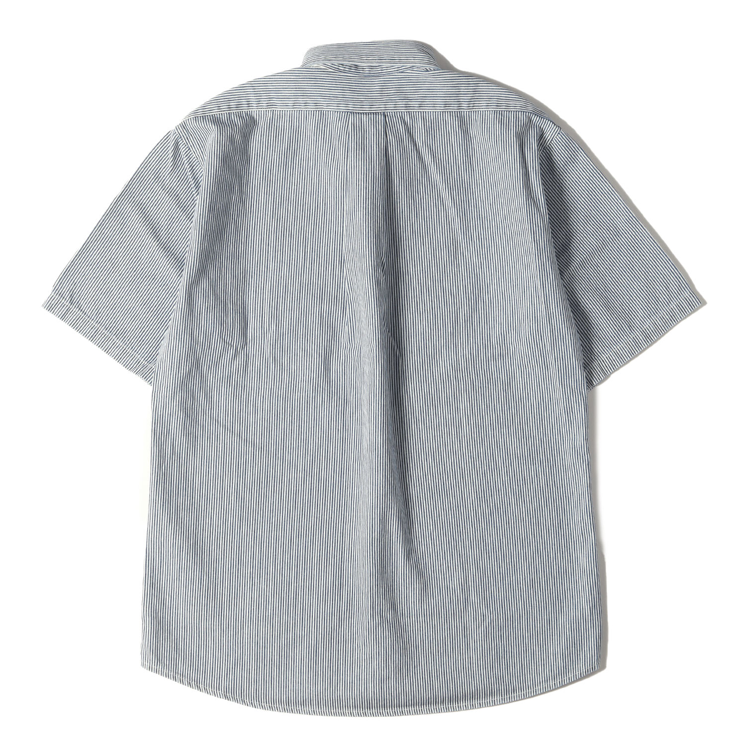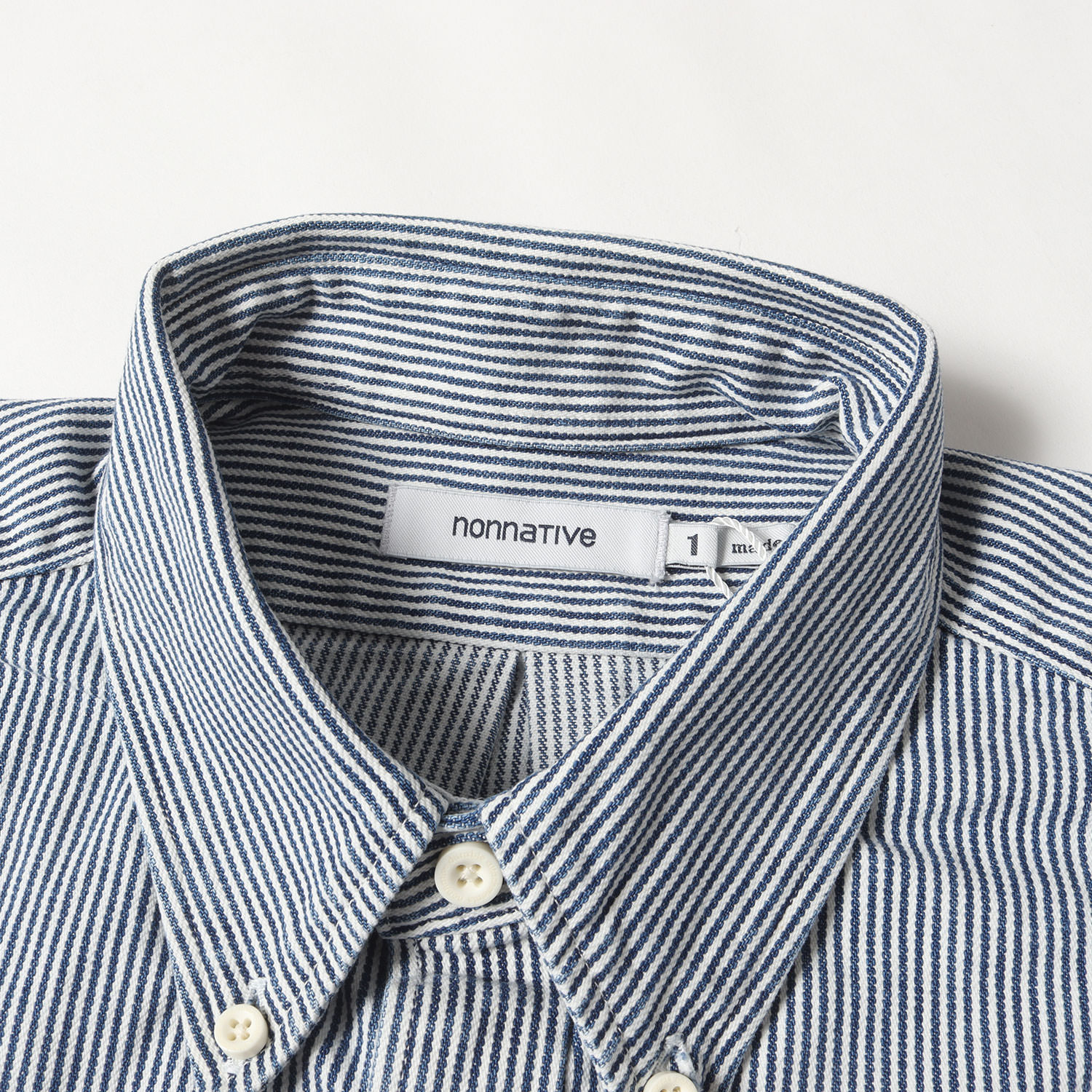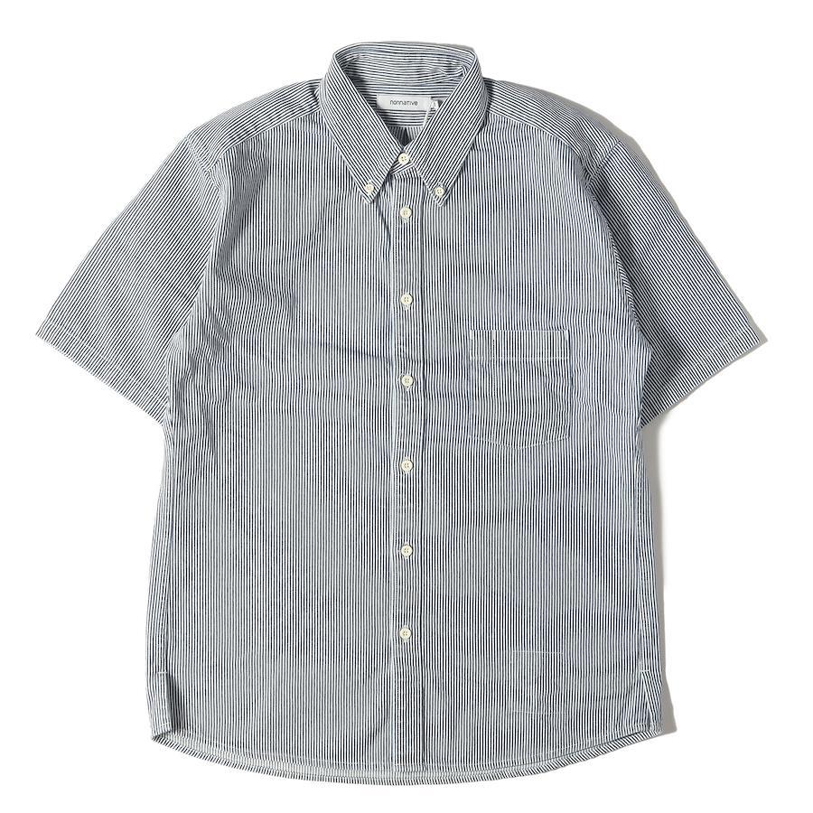 NONNATIVE Men's Casual Shirt, Size 1 / 24SS Hickory Stripe Button-Down Short Sleeve Shirt (Dweller Spring/Summer B.D. Shirt, 10oz Hickory Cotton) / Navy Stripe / Casual Top [K4617]