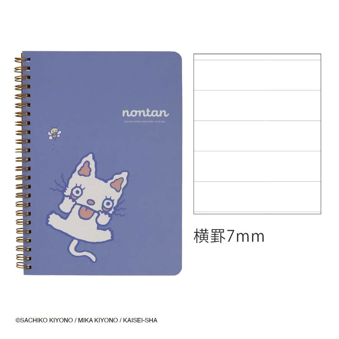 遊ぶのが大好きで元気いっぱいな子猫、ノンタンが活躍する絵本「ノンタン」シリーズは、ロングセラーとして小さな子どもたちに愛されつづけています。淡い色味がかわいいリングノート。ノンタンが大好きな子ども時代を過ごした大人の皆さん、また、お子さんがノンタン好きのお父さん、お母さんが日常で使いやすく、ときめいてしまうような、大人っぽいアイテムです。プライベートにはもちろん、仕事用にも使えそう♪ 【サイズ:A5(7mm横罫)】