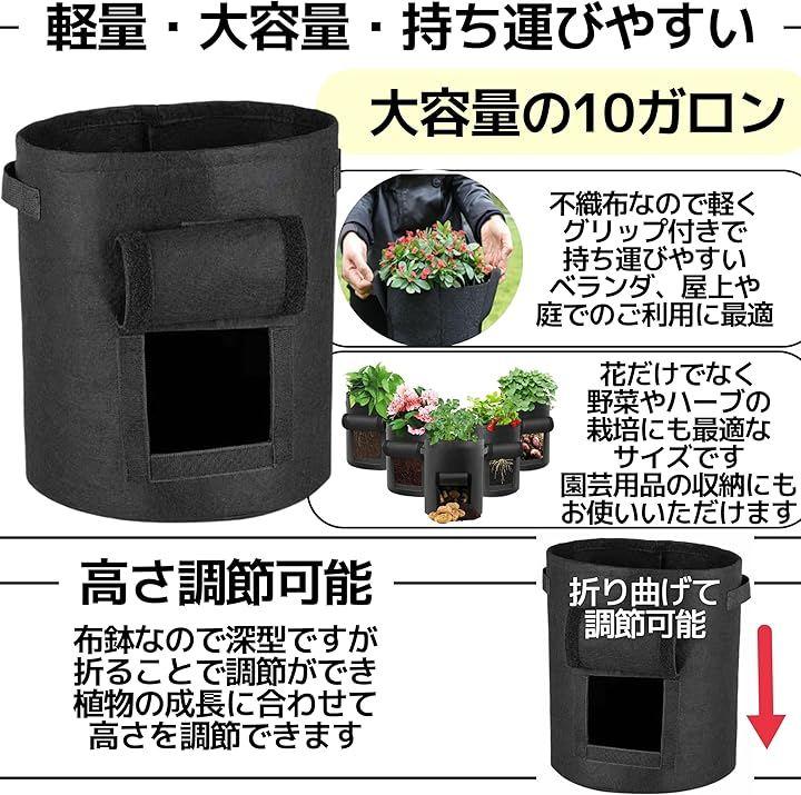 容量は大容量10ガロン、花だけでなく、野菜やハーブの栽培にも最適なサイズです。
