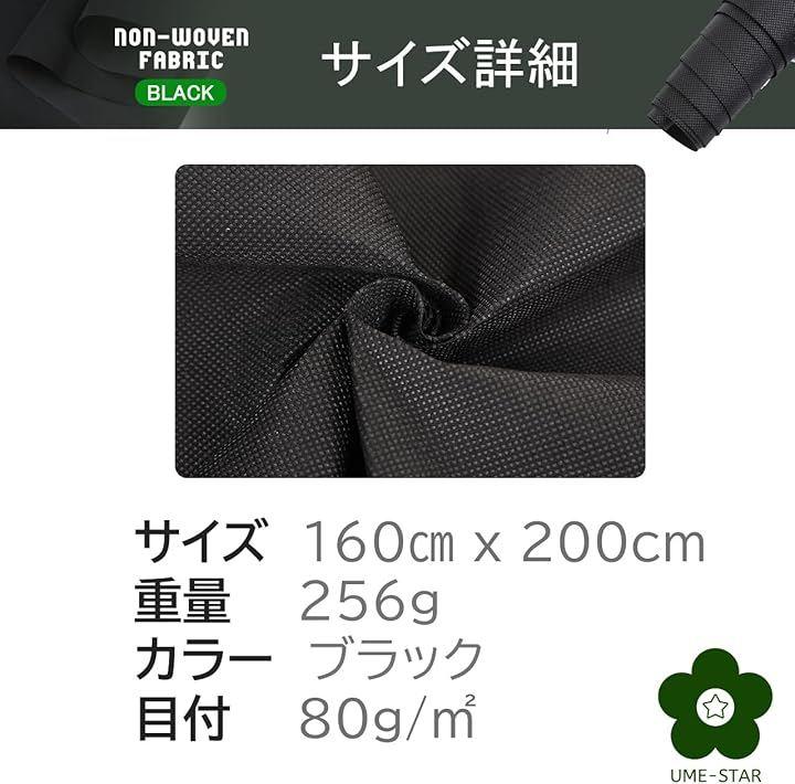 サイズ:160cm x 200cm 重量:256g カラー:ブラック 目付:80g/m2